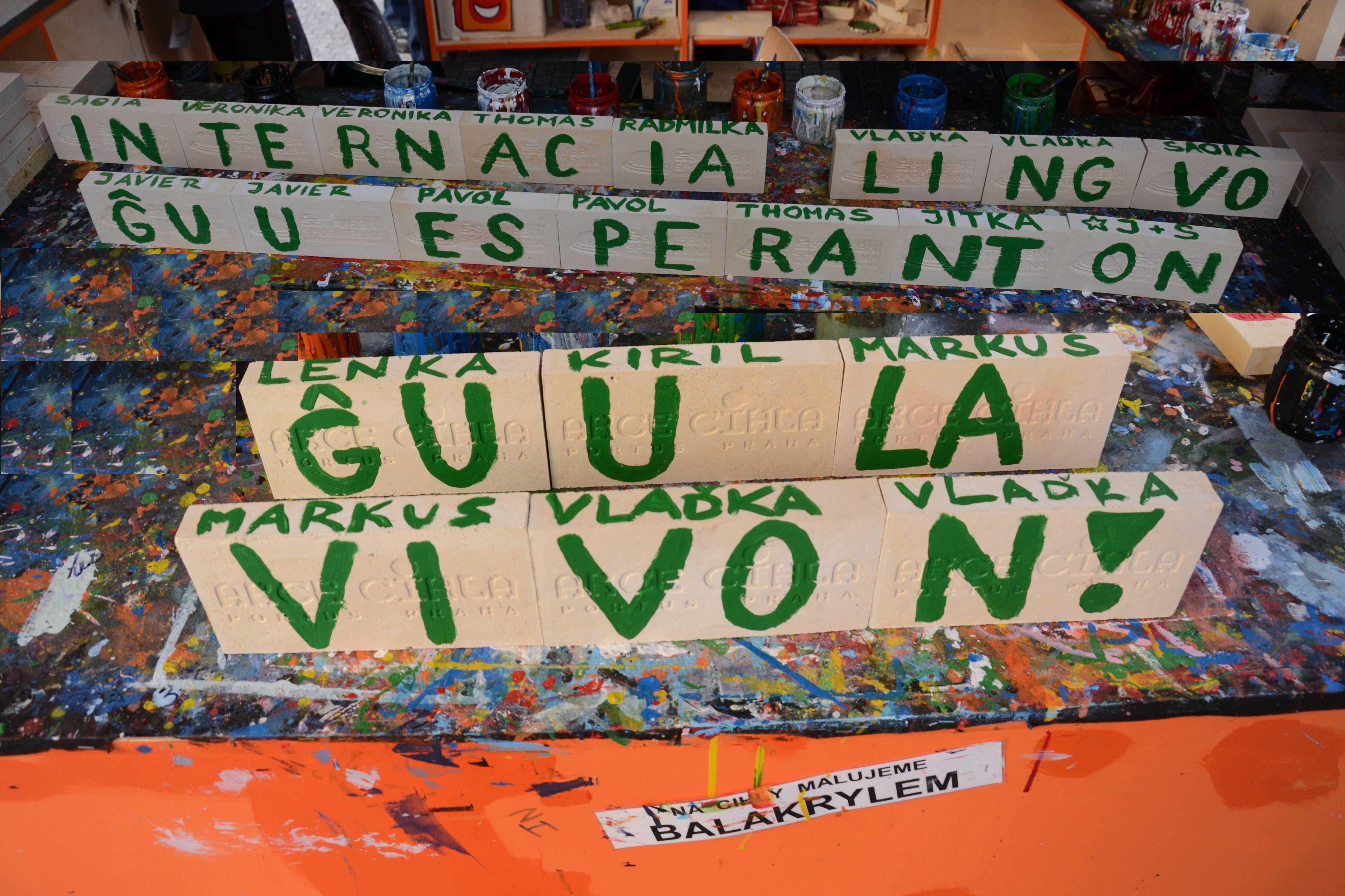 La aĉetitaj brikoj estis ornamitaj per Esperanto-tekstoj…