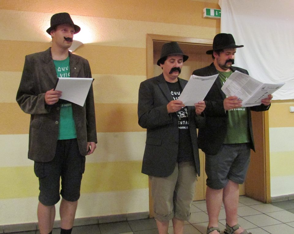 Dum la 101-a Unuversala Kongreso en Nitra povis partoprenantoj spekti premieron de filmita teatraĵo Konkero de la Norda poluso kun Esperanto-subtekstoj, kiu estis akompanata per klarigaj vortoj de tradukintoj, kiuj certe ne hazarde estas ankaŭ membroj de E-mental´.