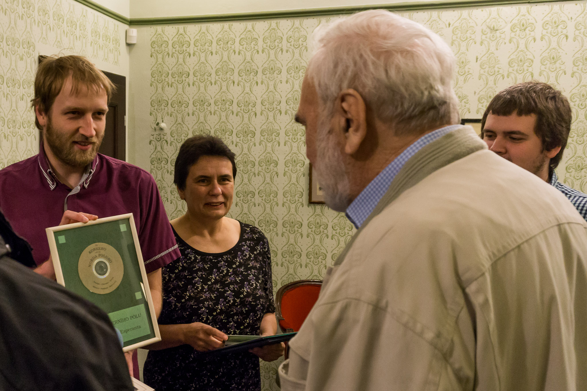 La titolon li akceptis dum solena trasdono de Esperanto-subtekstoj por teatraĵo “La konkero de la Norda poluso” de Jára Cimrman, rekte en la teatro, kie li mem aktoras.