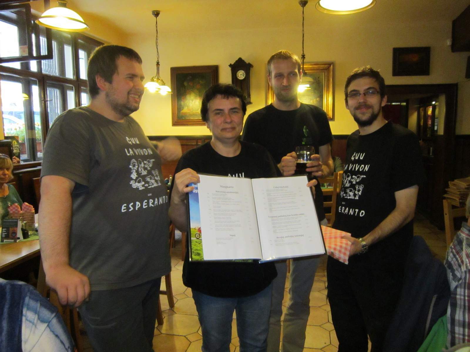 La 28-an de septembro 2017 estis oficiale “baptita” jam dua manĝkarto tradukita en Esperanton. La Esperanto-manĝkarton vi nun povas peti en Prago en restoracio V Podskalí!!!!