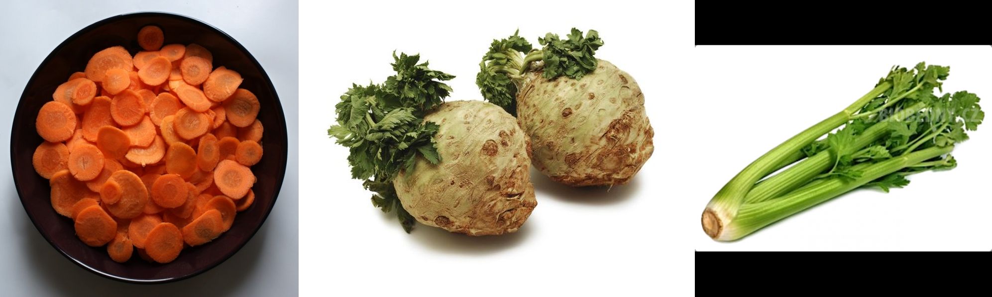 Aldonu tranĉitan karoton, foliojn de celerio kaj tranĉitan celerion.