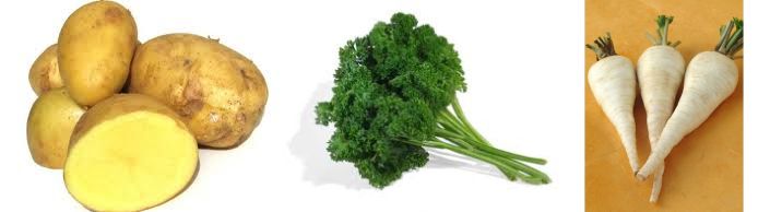 Poste enmetu senŝeligitajn terpomojn distranĉitajn je malgrandaj pecoj, la petroselon kaj petroselradikon.