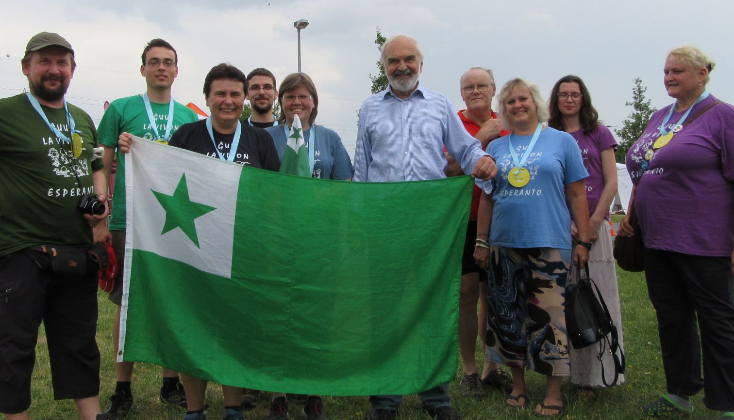Komuna foto kun ĉefa organizanto Zdeněk Svěrák, kiu estas honora membro de E-mental´.