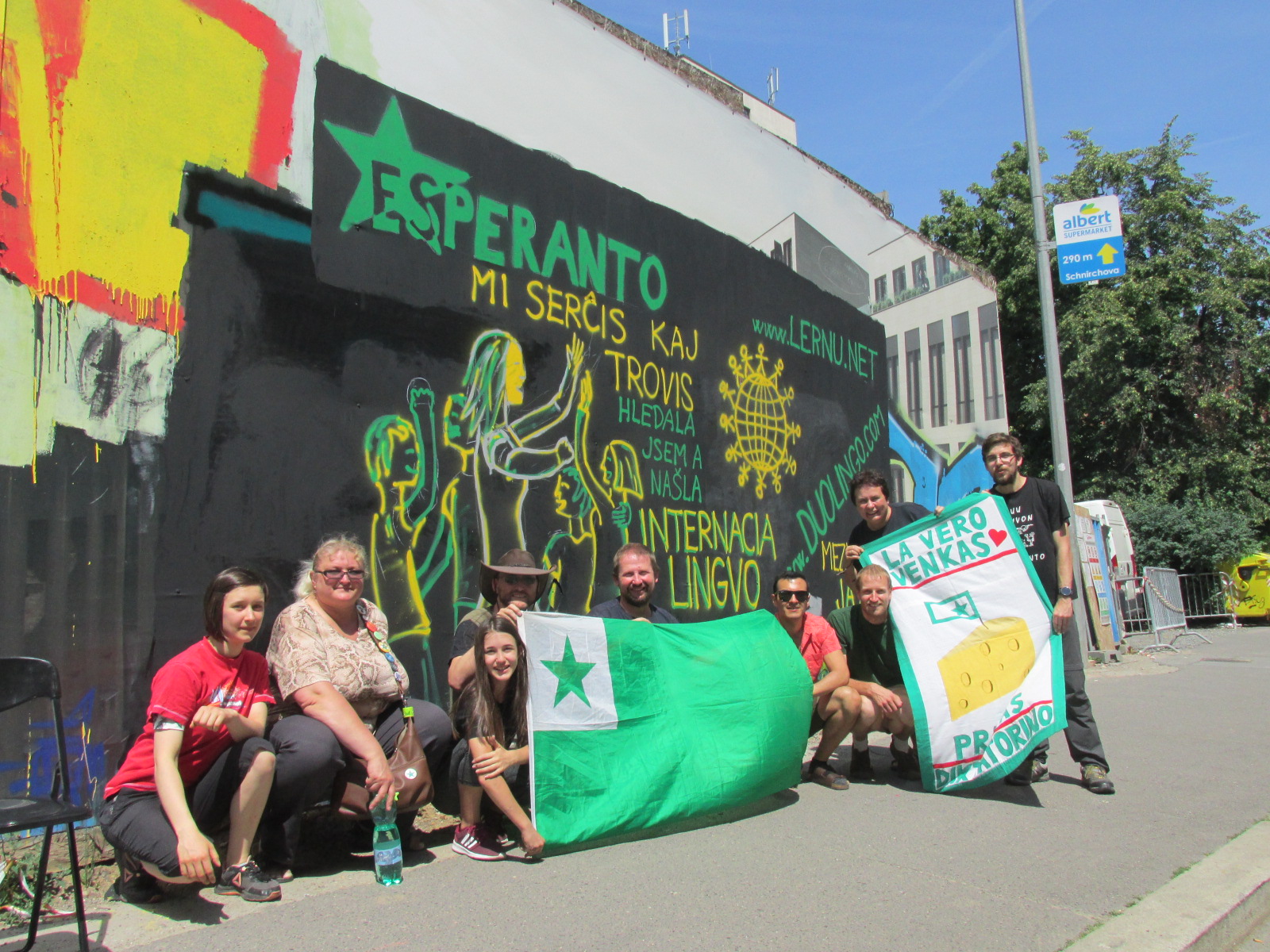 La 9-an de junio 2019 membroj de la klubo E-mental´kreis en Prago reklamon por Esperanto. Ili pentris ĝin sur barilo ĉirkaŭ konstruata domo en vigla strato de Prago. Posedantoj de la barilo – la konstrufirmao – mem proponas al homoj, ke ili laŭplaĉe kreu.