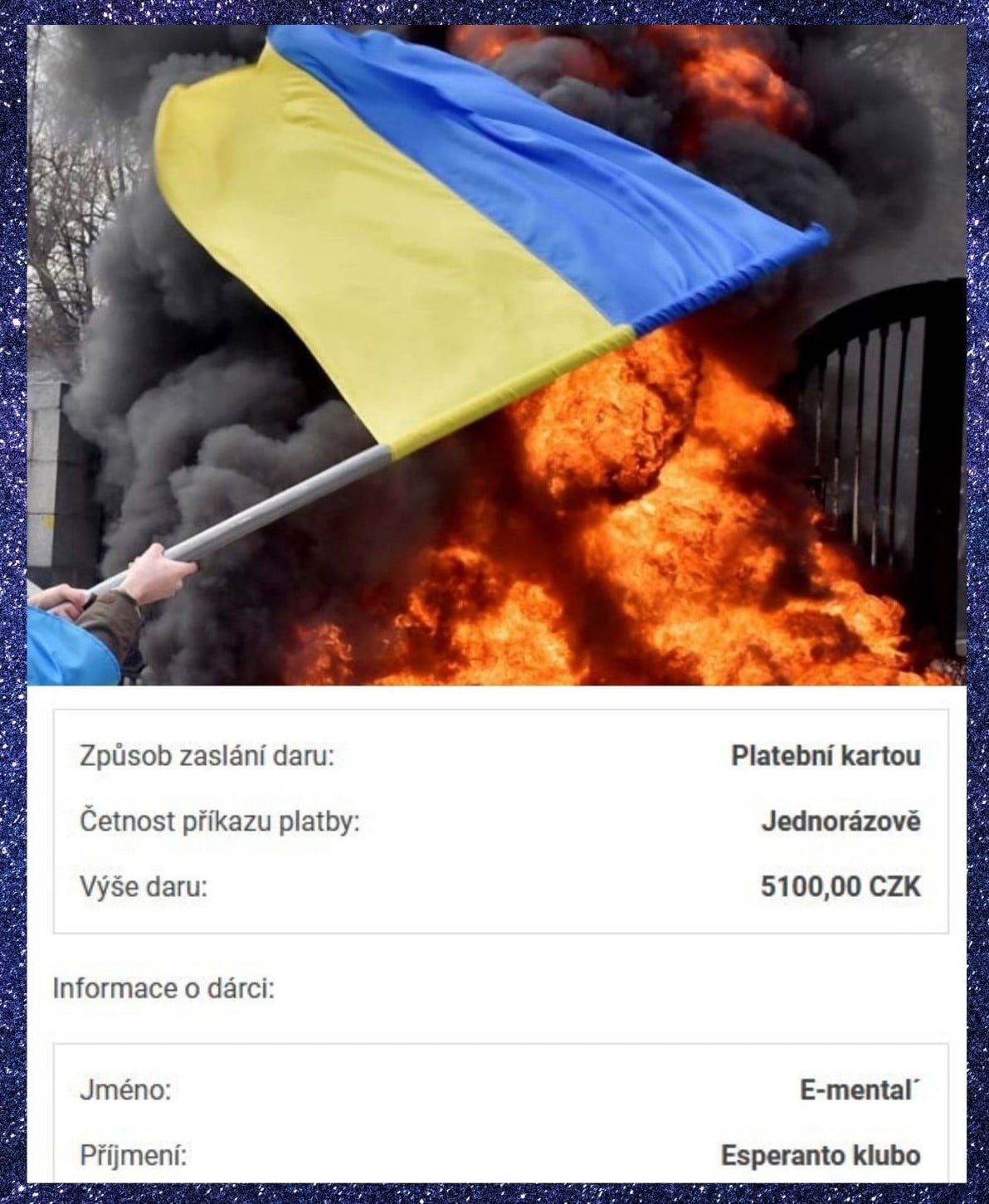 Dum E-mentala aranĝo Bestĝardeno 2022 partoprenantoj kolektis monon por helpi al Ukrainio kaj sendis ĝin al la konto de karitata organizo Člověk v tísni.