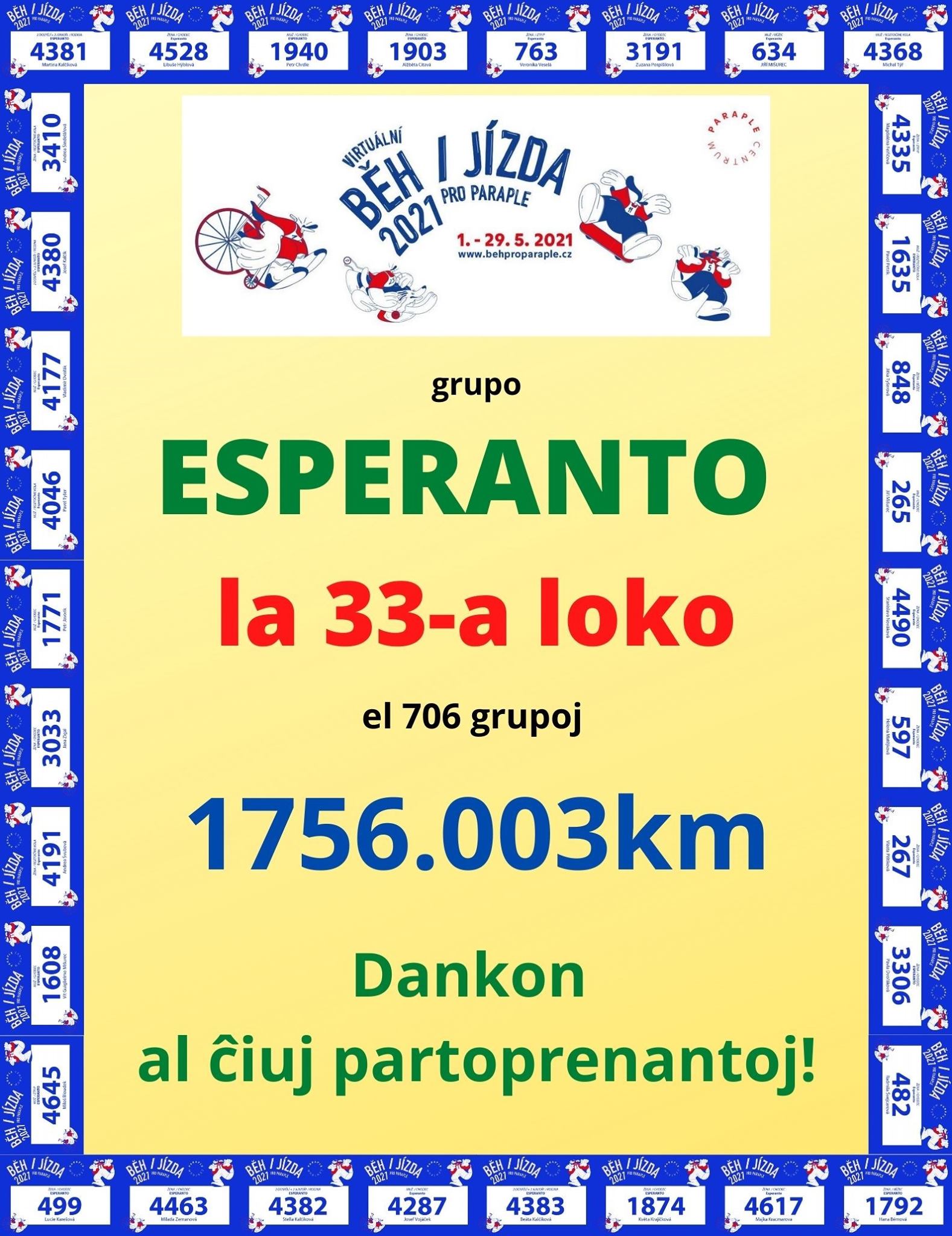 Same kiel dum pasintaj jaroj, ankaŭ ĉi-jare ni povas helpi al handikapitaj homoj kaj samtempe iom fari reklamon por Esperanto partoprenante karitatan aranĝon „Virtuala kuro por Paraple“.