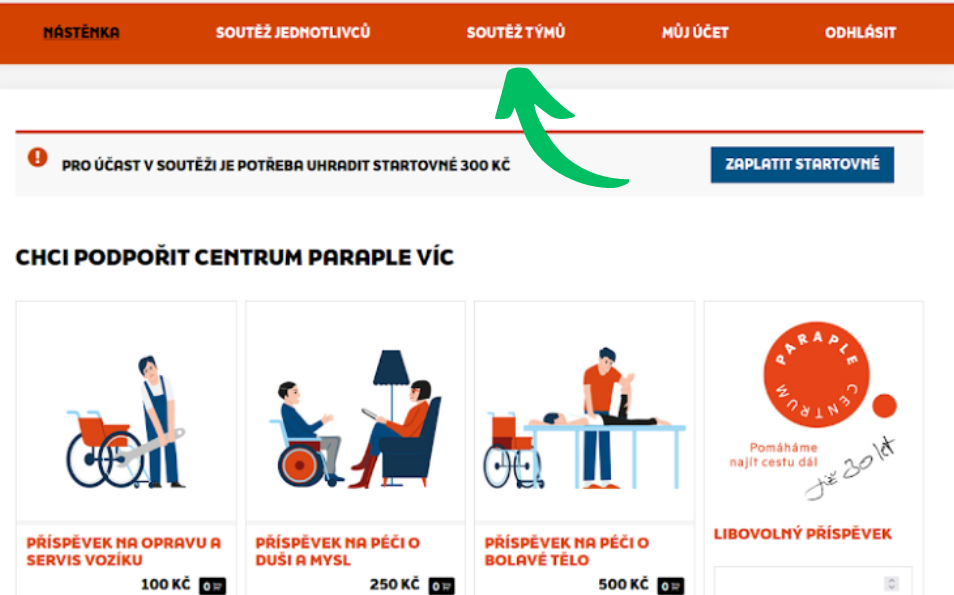 La principo estas simpla. Ĉiu partoprenanto pagas la „startan kotizon“ (300 Kč/12 EUR), kiun ricevos “Paraple”. Li poste kuras/biciklas/piediras…, registras kilometrojn (per telefona apo aŭ per saĝa telefono) kaj tiel konkursas kun aliaj partoprenantoj. Oni povas konkursi kiel unuopulo sed ankaŭ oni povas membriĝi en iu teamo.