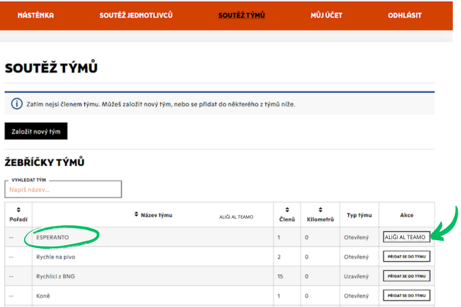 Trovu teamon “ESPERANTO”, klaku “ALIĜI AL TEAMO”