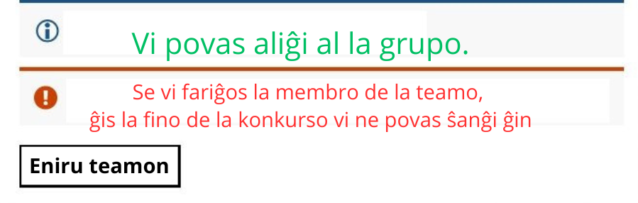 - Ĉiu registrita konkursanto povas aliĝi al la teamadefio. Vi povas aliĝi al jam ekzistanta teamo aŭ krei novan teamon.