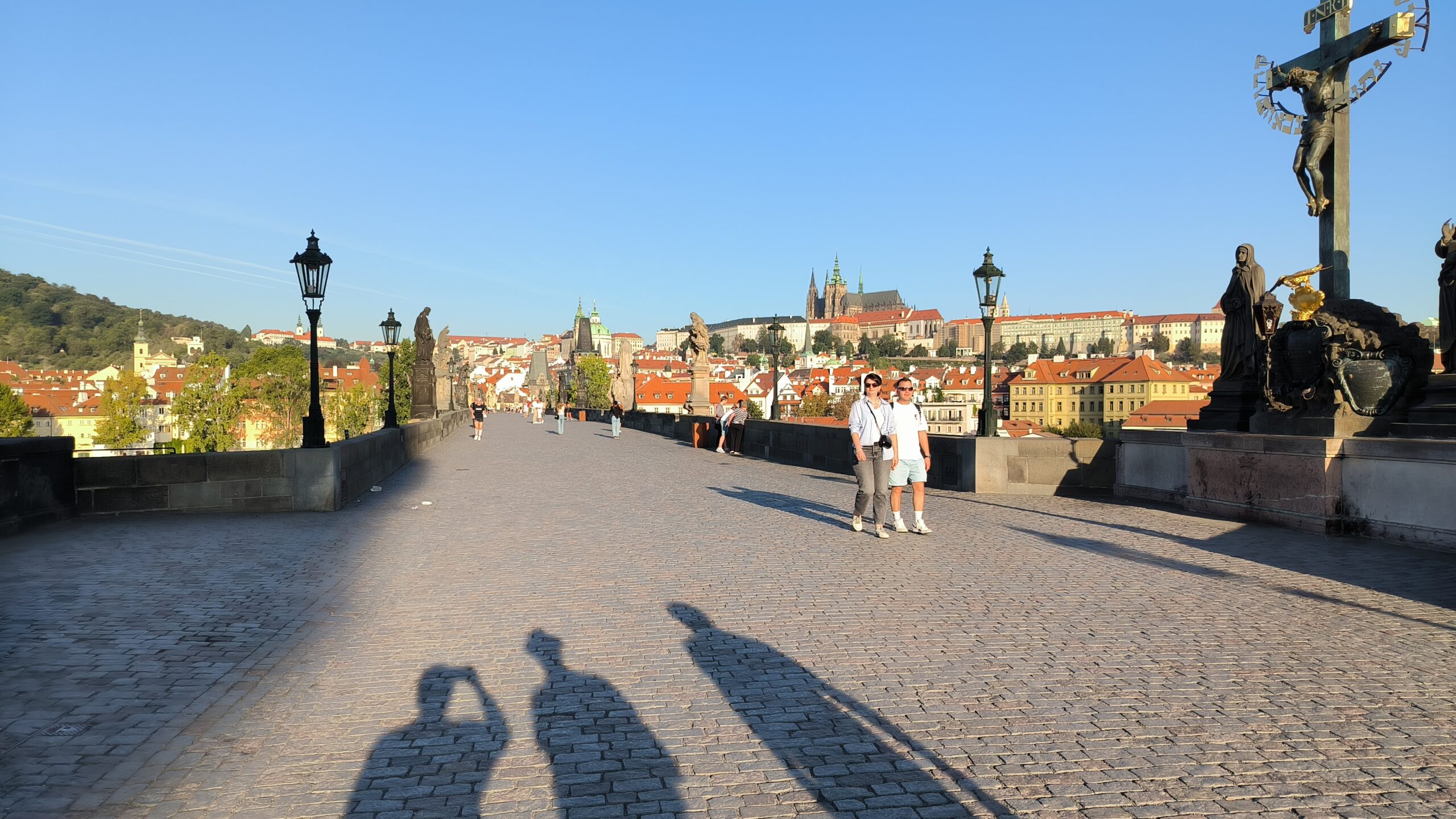 Poste promeno al Ponto di Karel, kiu estis bele lumigita de matena suno.