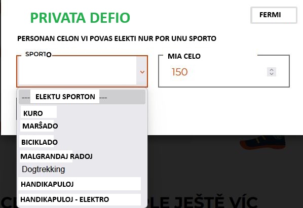 • Oni kalkulas ĉiujn kilometrojn faritajn per mekanika rulseĝo, manbiciklo aŭ motomedo. Permesata estas nur memstara moviĝo aŭ kun minimuma helpo de alia persono. Registru nur rezultojn ligitajn al celita konkurenca aktiveco, t.e. moviĝo super la ĉiutaga rutino.