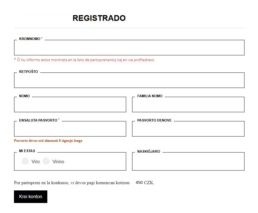 Viaj personaj datumoj estos prilaborataj nur por la celoj de registrado kaj organizado de la konkurso. Detalojn vi trovos en la Kondiĉoj de protekto de personaj datumoj.