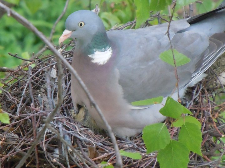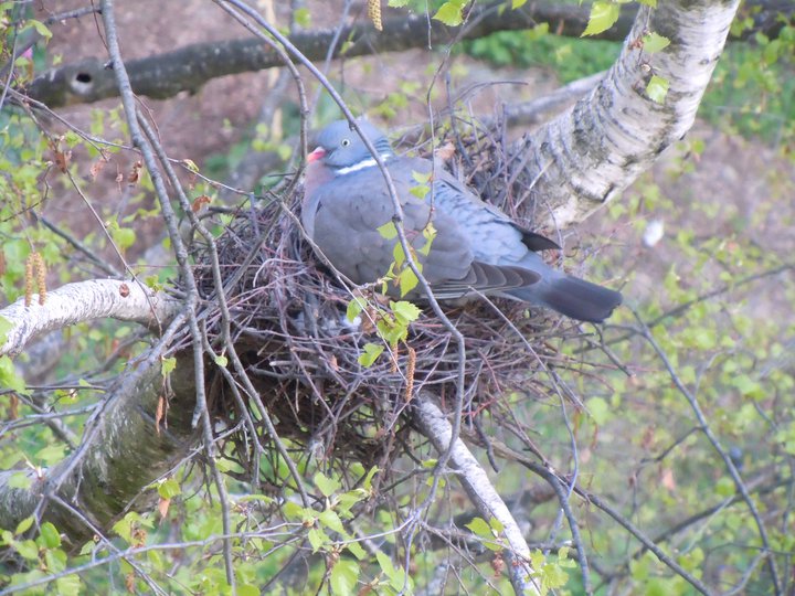 Antaŭ balkono aperis kolomba nesto kaj postnelonga tempo sidis tie sur ovoj kolombino…..
