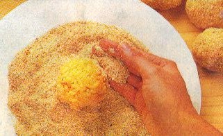 4. Ĉiun buleton ĉirkaŭvolvu en raspita pano kaj fritu ĝin po 3-4 pecoj tute trempitaj en oleo proksimume 4-5 minutojn ĝisore. Per papertuko forigu superfluan oleon.