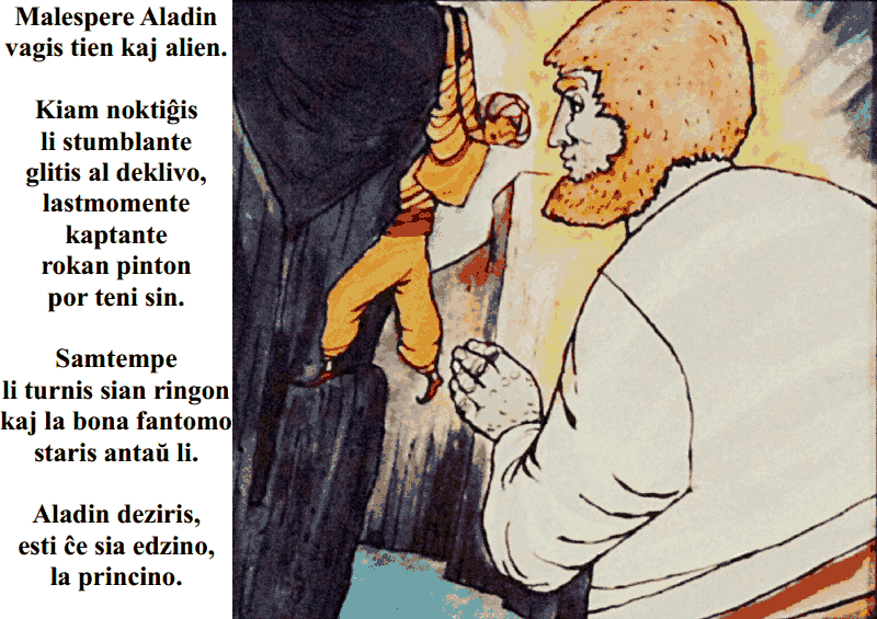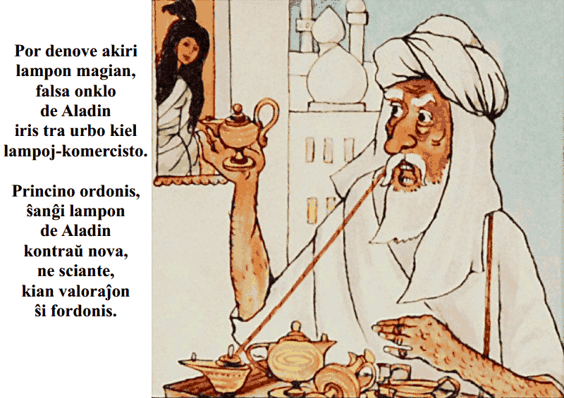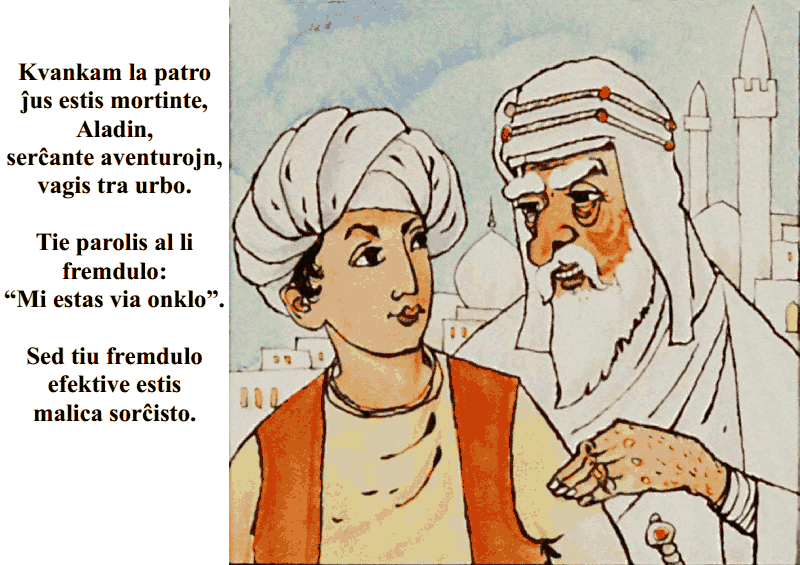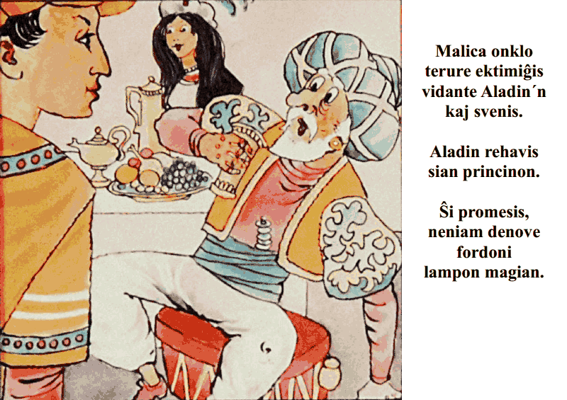 Ĉu vi jam konas la fabelon pri Aladin kaj lia lampo? Ne? Do sidiĝu kaj legu!