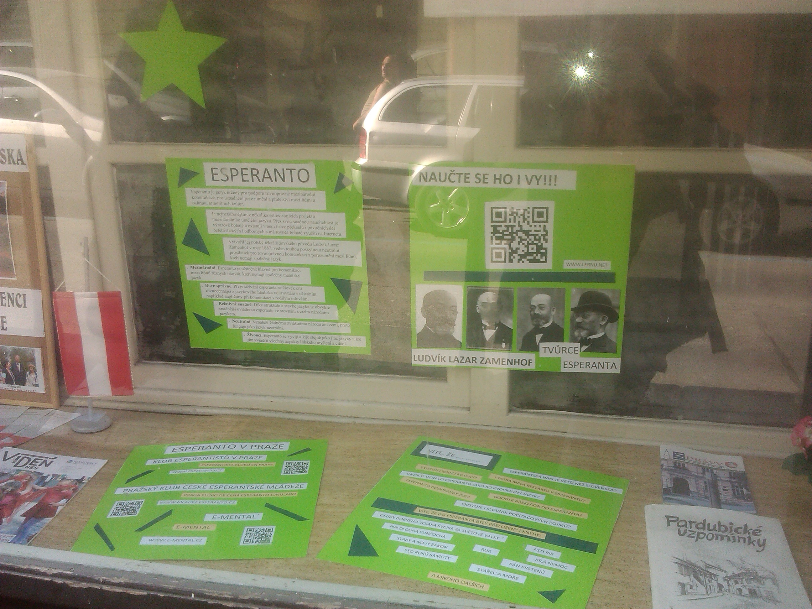 La lokon vi ekkonos laŭ nova informilo pri Esperanto en montrofenestro de la klubejo, kiun faris Praga junularo kunlaborante kun E-mental´!