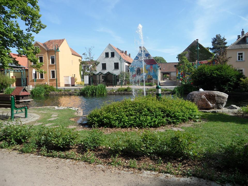 * trarigardo de la urbeto Weinböhla kaj de la okazanta vinofesto
