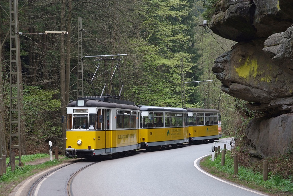 -veturo per Kirnitzschtalbahn (historia tramo) al Beuthenfall